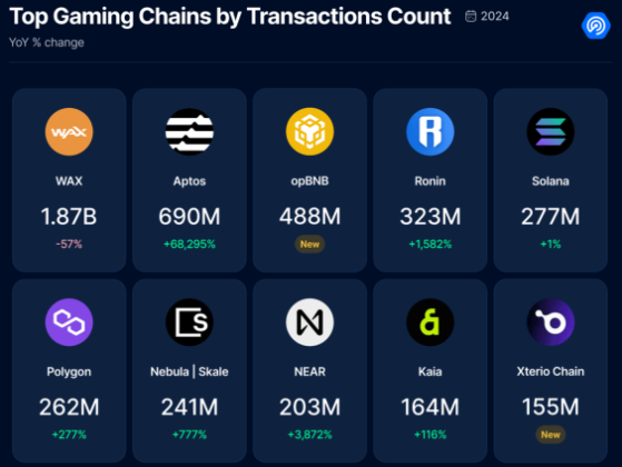 Interestingly, Solana is the fifth-largest gaming chain by transaction count.