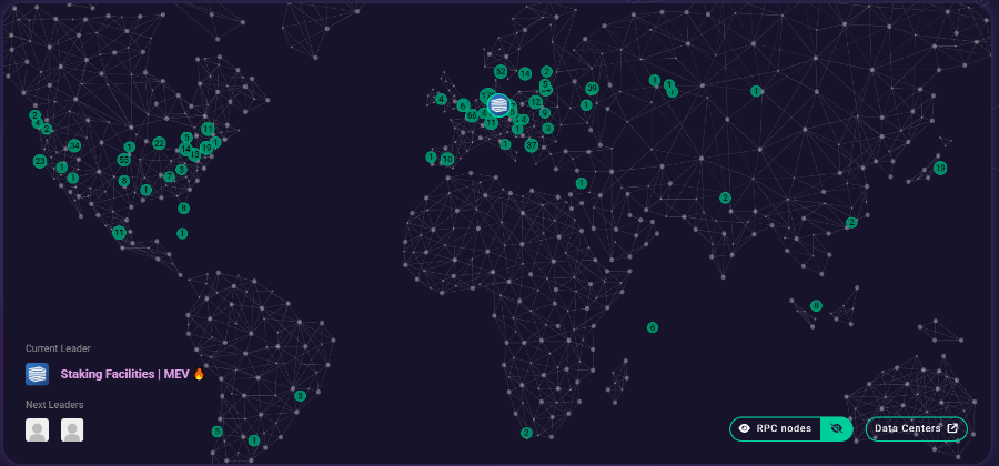 Solana validators are dispersed across all continents, though with a higher concentration in Europe and North America.