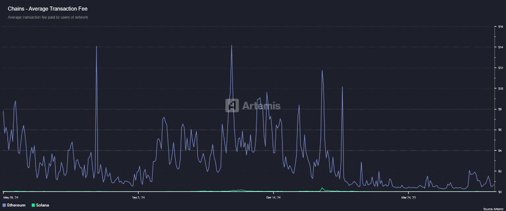 Ethereum’s average transaction fee significantly declined from a 2025 high of $10 to only $0.7 in May, but it’s still higher than Solana’s average fee of $0.01. Thanks to its low fees, Solana is one of the most efficient chains, making it a great choice for dApps.