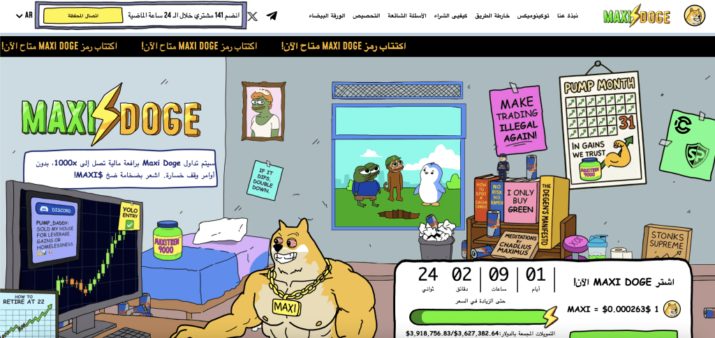 2. ماكسي دوج (Maxi Doge – MAXI): عملة ميم حلال تجمع بين روح الدعابة وفائدة المجتمع