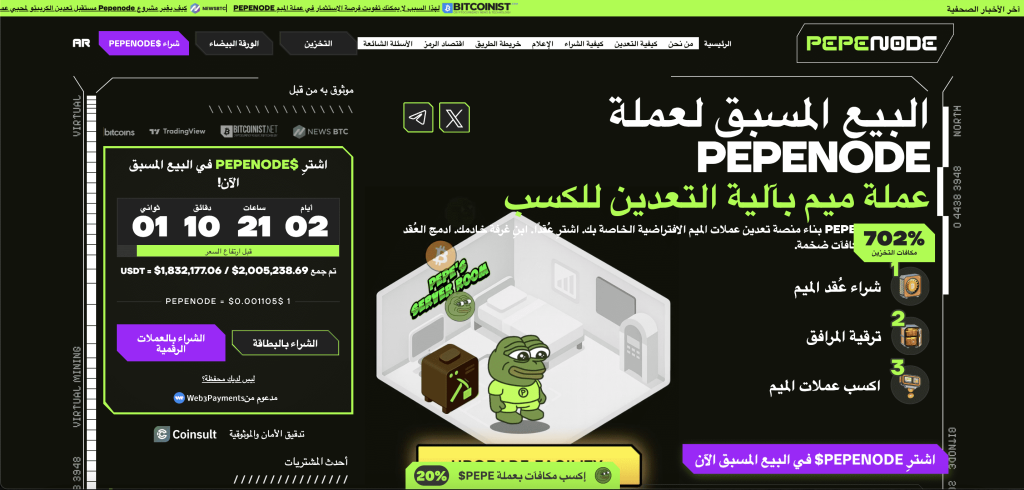 3. بيبي نود (Pepenode – PEPENODE): عملة ميم حلال بنظام تعدين تفاعلي قائم على المشاركة