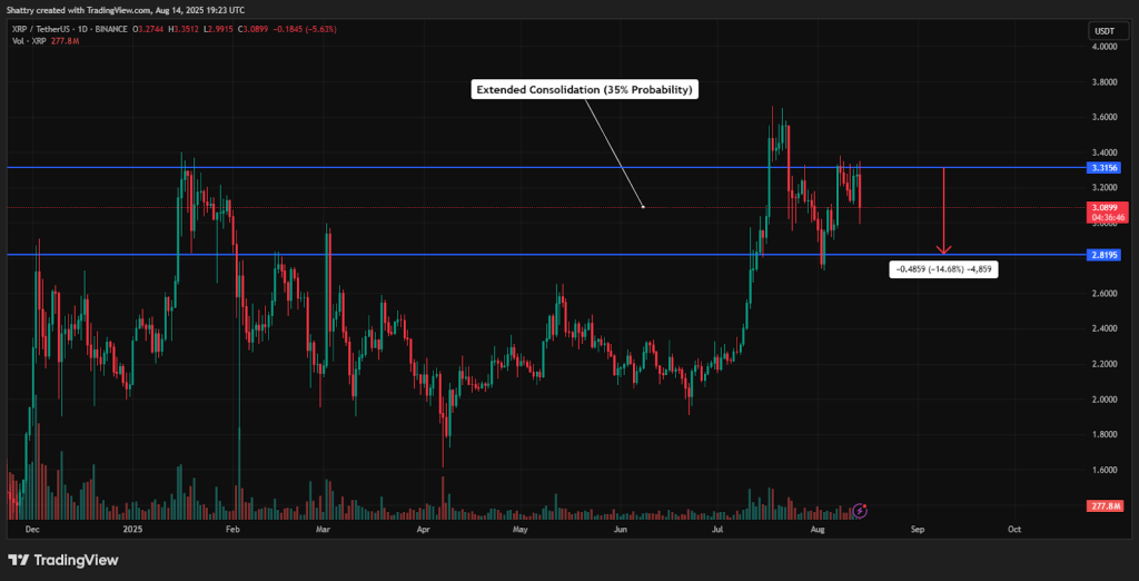 مخطط بياني لسعر عملة ريبل يعرض سيناريو الحركة العرضية الممتدة