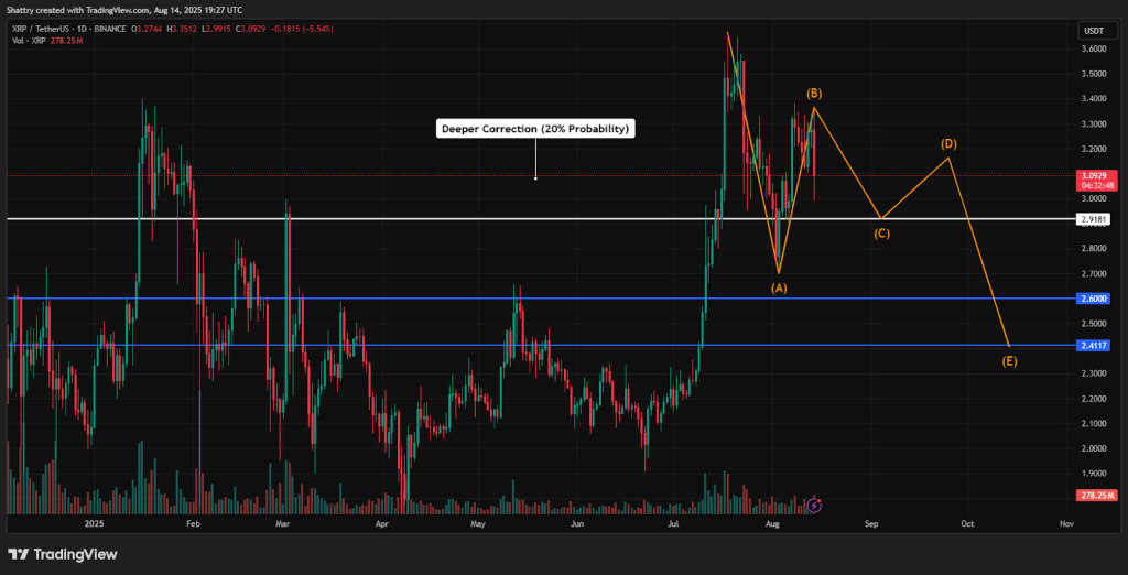 تحليل ChatGPT لسعر عملة ريبل (Ripple-XRP) يكشف اختبار دعم مهم عند 3.10$ بالتزامن مع تصفية صفقات بقيمة مليار دولار أطلقت موجةً من البيع لتحقيق الربح