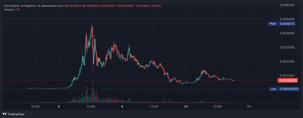 وقد صرّح ماسك في خطابٍ له يوم الخميس الماضي: “سأنشِئُ لجنةً لكفاءة الحكومة مهمتها متابعة التدقيق المالي للحكومة الفيدرالية وأدائها”؛ وقد جاء الحديث المتزايد حول التعاون المقترح بين ترامب وماسك لصالح عملة D.O.G.E، إذ إن ترامب وماسك يشكّلان حافزاً قوياً لعملات الميم، ولكنّ سعر D.O.G.E بدأ بالانخفاض من قمته الأخيرة، ويقترب حالياً من مستوى الدعم المجاور له.