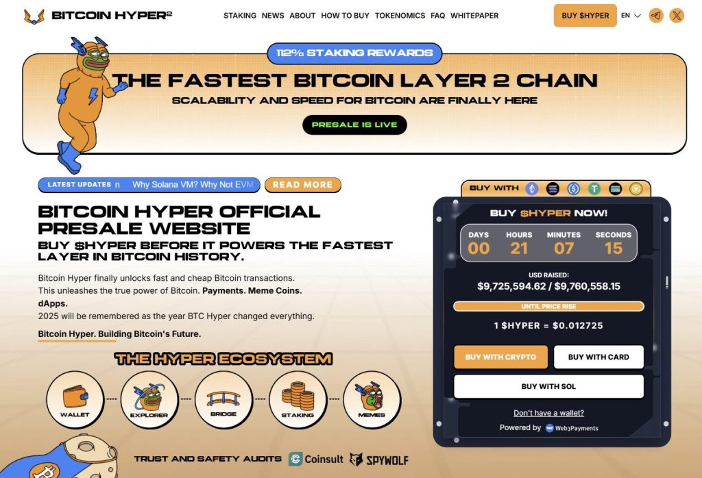 كما تم تدقيق العقد الذكي لعملة المشروع -الساعي إلى توفير إمكانات التوسع وسهولة الاستخدام والموثوقية- من قبل Coinsult؛ وبالنظر إلى الاهتمام المتزايد بالمشروع، فقد نجح الاكتتاب بالفعل بجمع أكثر من 10 مليون دولار مع بيع أغلبية العملات المخصصة للاكتتاب. يتم بيع عملة بيتكوين هايبر (Bitcoin Hyper) حالياً بسعر 0.012745$، ولكن هذا السعر سيرتفع قريباً. أخيراً، يُمكنكم شراء العملات بالتوجه إلى الموقع الرسمي للمشروع ومبادلتها بالعملات الرقمية أو شراؤها بواسطة الفيزا والماستركارد.