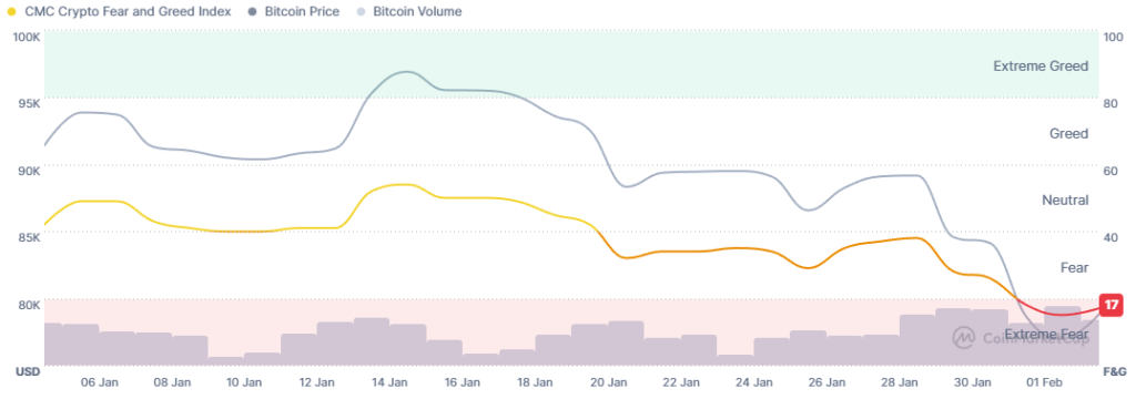 يقف مؤشر الخوف والطمع للعملات الرقمية عند 17 اليوم، مقارنة بـ18 يوم الأحد/الاثنين و26 يوم السبت.