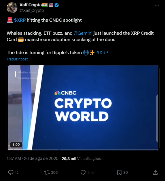 Paralelamente, cresce a especulação em torno da criação de ETFs lastreados em XRP, o que daria mais liquidez, legitimidade regulatória e atrairia investidores que ainda não acessam criptomoedas diretamente.