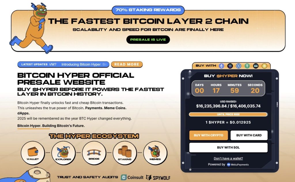 O Bitcoin Hyper ($HYPER) surge como a primeira rede de segunda camada (Layer 2) nativa do Bitcoin construído sobre a Solana Virtual Machine (SVM).