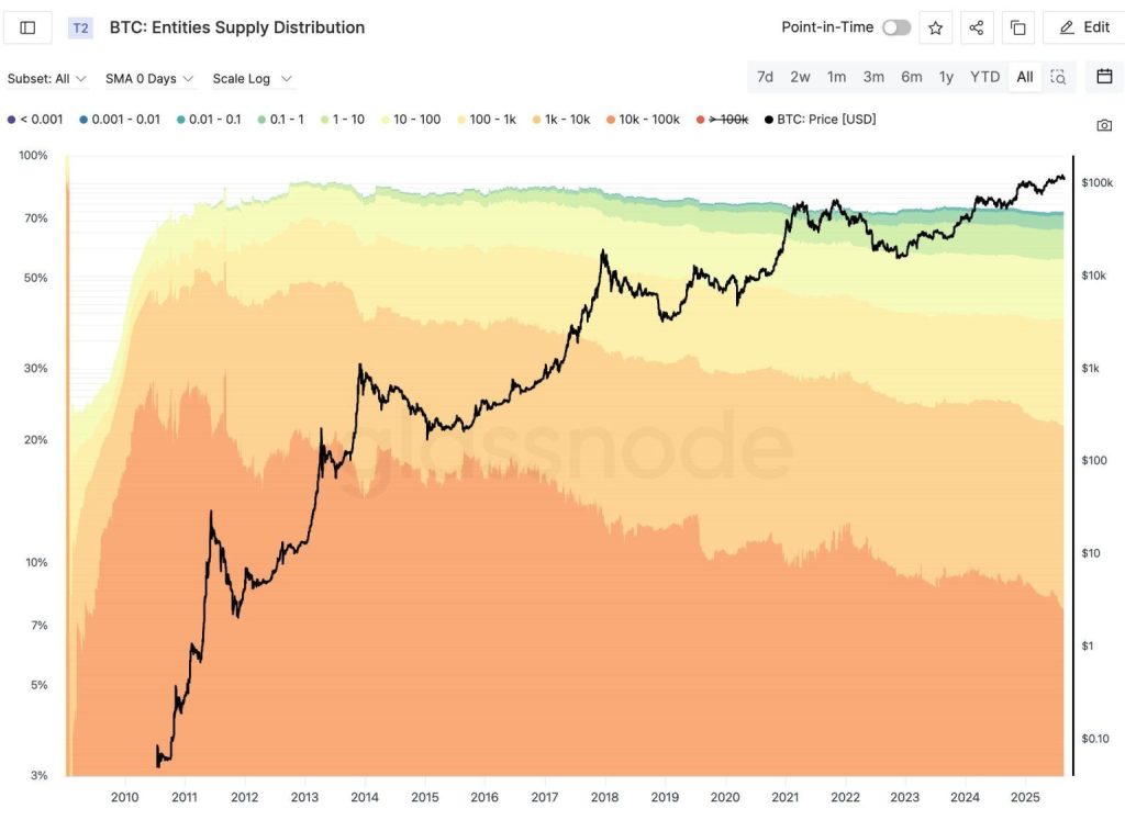 Muito do Bitcoin ainda está concentrado em baleias antigas, que compraram por menos de US$ 10.