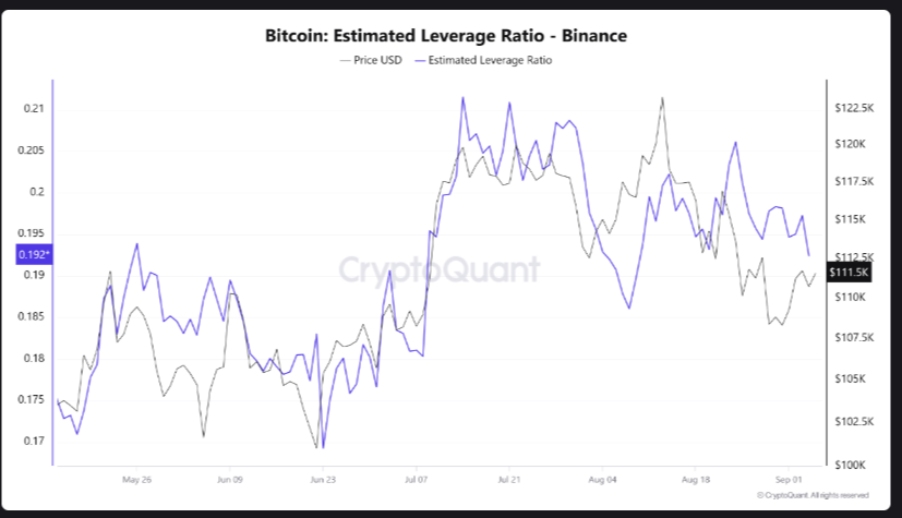 Além disso, dados da Binance também mostram que o uso de alavancagem está presente, mas não chega ao excesso visto em julho.