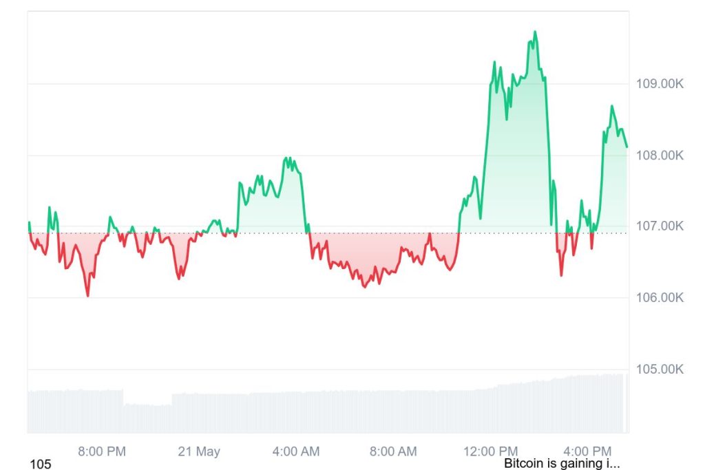 O Bitcoin ultrapassou os US$ 109.114,88 nesta quarta-feira (21/05). Assim, a criptomoeda atingiu um novo recorde histórico após uma disparada de 40% em seis semanas.