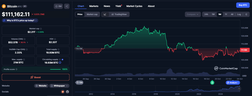 Bitcoins agora 24/10: criptomoeda vai cair abaixo de US$ 100 mil, prevê banco