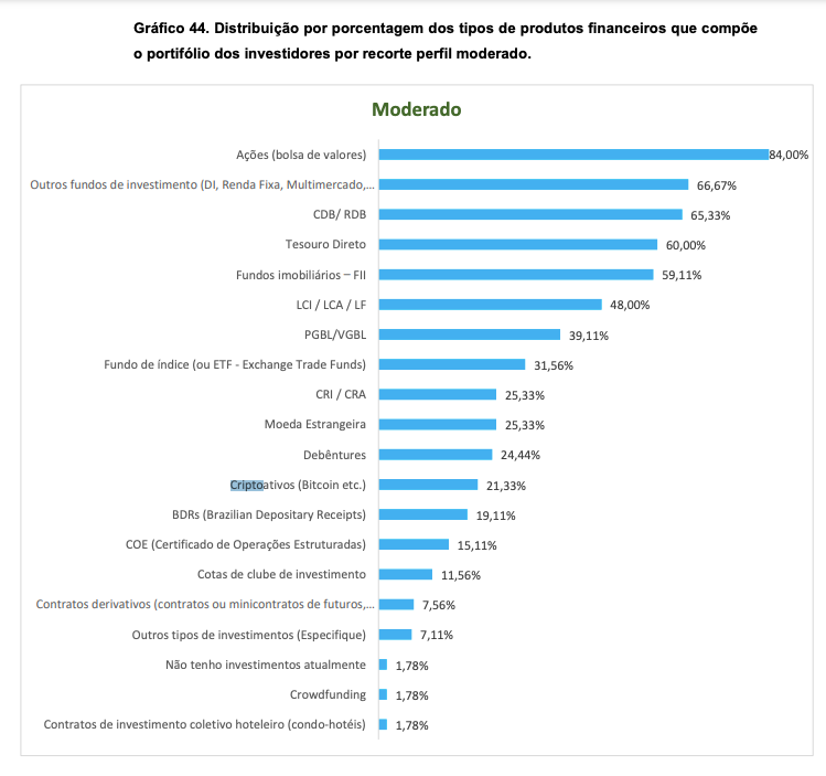 Por outro lado, os conservadores ainda preferem produtos de renda fixa como CDBs, Tesouro Direto e LCI/LCA, priorizando segurança e estabilidade. Esse comportamento reflete a necessidade de maior educação sobre criptoativos, conforme apontado pela CVM.