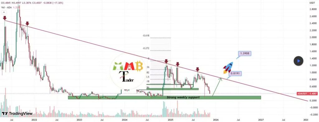 Cardano agora: ADA segura suporte em US$ 0,40 e analistas apostam em possível alta de até 88%