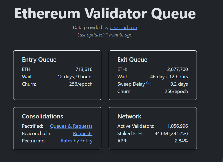 No entanto, a fila de saída, que já foi de apenas 600 mil ETH no início de agosto, explodiu para os atuais 2,6 milhões.