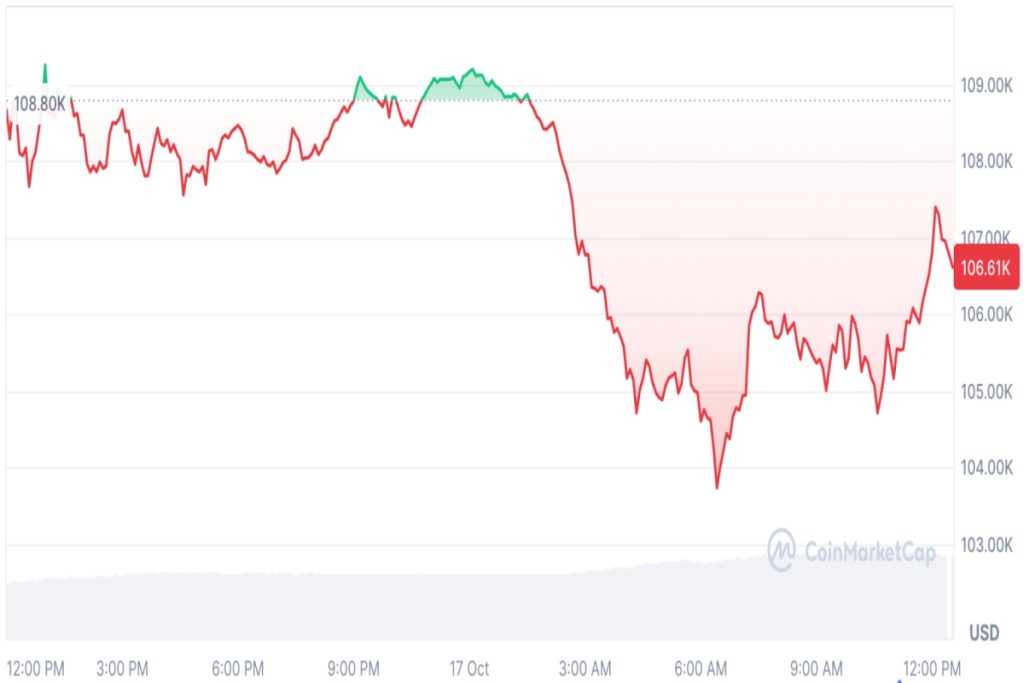 O Bitcoin é negociado por cerca de de US$ 106 mil, após subir em relação aos US$ 105 mil mais cedo.