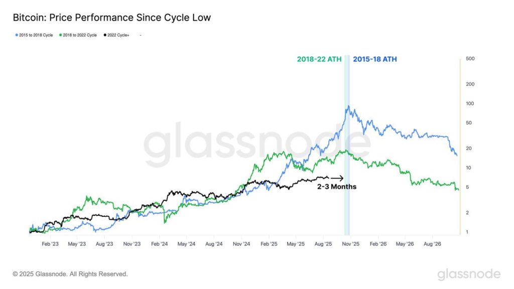 Além disso, uma pesquisa da Glassnode reforça que o ciclo do BTC ainda existe. A empresa de análise afirmou que a duração atual se assemelha aos ciclos anteriores.