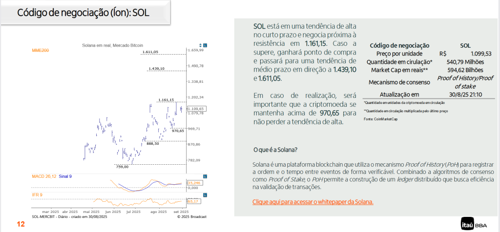 Outro ativo em destaque é a Solana, que segue em tendência de alta.