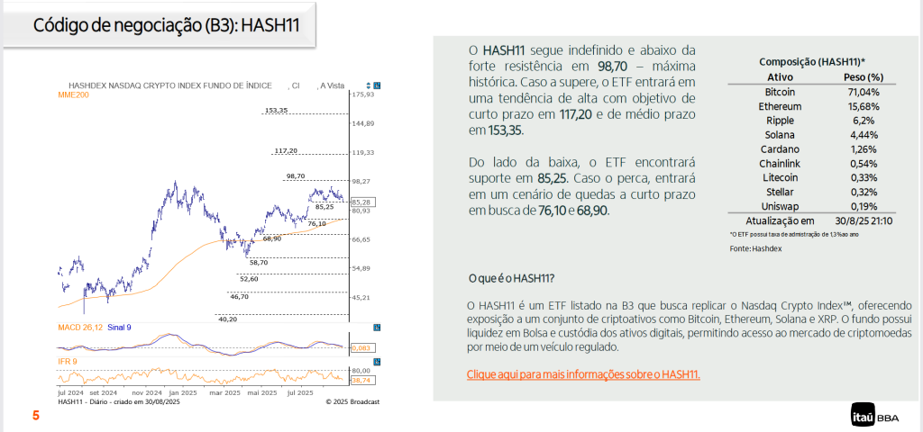 O Itaú também avaliou os ETFs listados na B3 que replicam o desempenho de diferentes criptomoedas.