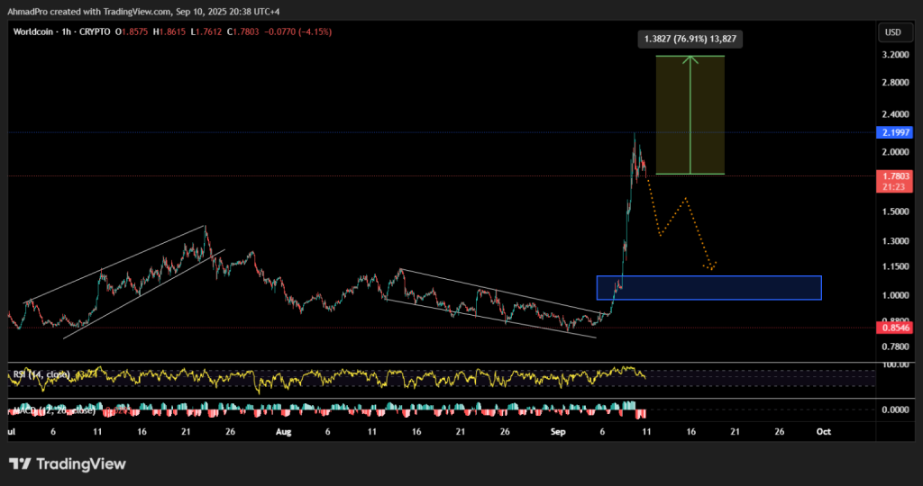 Todo esse momentum está aumentando a pressão compradora, e muitos traders enxergam espaço para o preço da Worldcoin buscar novas máximas se a demanda continuar acelerando.