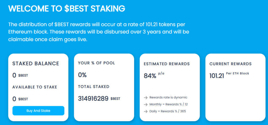 Os tokens BEST alimentam o ecossistema, garantindo baixas taxas, recursos exclusivos e um rendimento de staking de 84% já ativo.