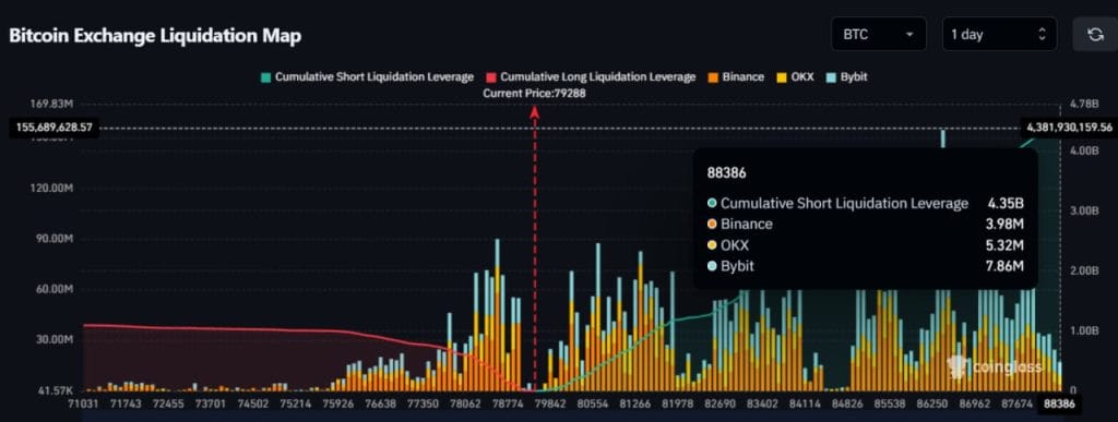 Maior liquidação da história: Traders podem perder US$ 4,3 bi se BTC cair abaixo de US$ 79 mil