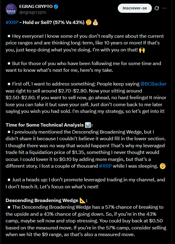 O analista cripto Egrag Crypto compartilhou suas previsões para o XRP.
