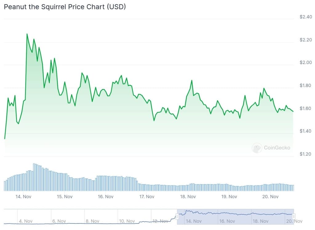 Peanut the Squirrel (PNUT), uma moeda meme baseada em Solana, cativou os investidores após sua listagem na Binance.