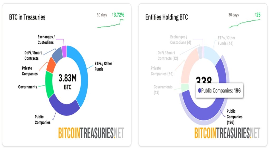 Atualmente, mais de 196 empresas listadas já possuem BTC em seus balanços, somando mais de US$ 120 bilhões.