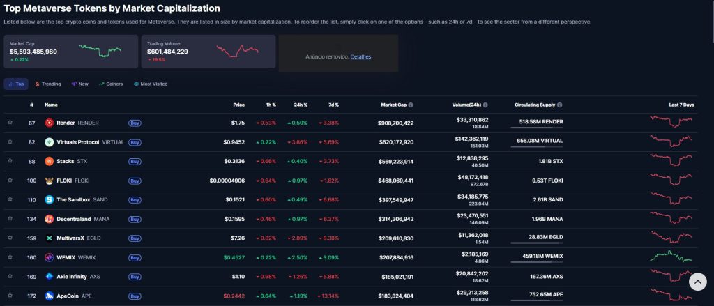 Tokens como Render, Sandbox e Decentraland, que um dia foram considerados os pilares dessa nova era digital, chegaram agora à beira da irrelevância.