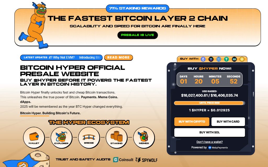 Um exemplo é o Bitcoin Hyper ($HYPER), que se apresenta como a primeira Layer 2 do Bitcoin baseada na Solana Virtual Machine (SVM).