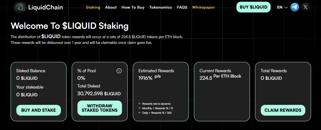 Pré-venda da Criptomoeda $LIQUID e Modelo de Staking