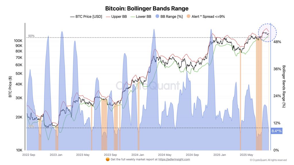 Já a análise da CryptoQuant mostra que a zona entre US$ 116 mil e US$ 118 mil funciona como faixa de equilíbrio antes de um novo impulso.