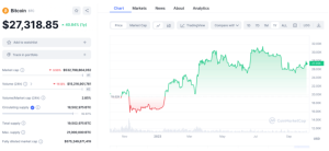 Ação do preço em 1 ano do Bitcoin, CoinMarketCap