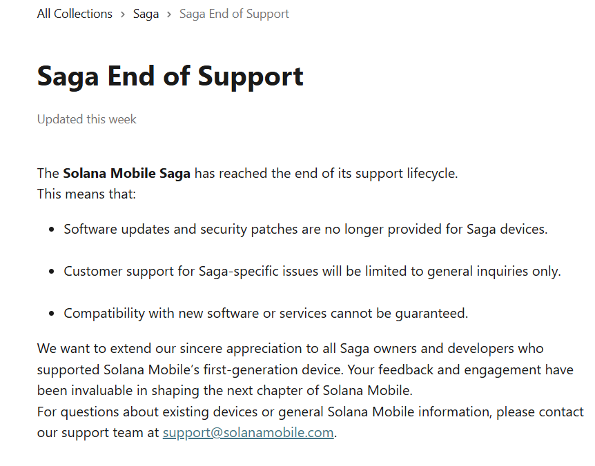 A Solana Mobile anunciou nesta terça-feira, 21, o fim do suporte ao smartphone Saga.