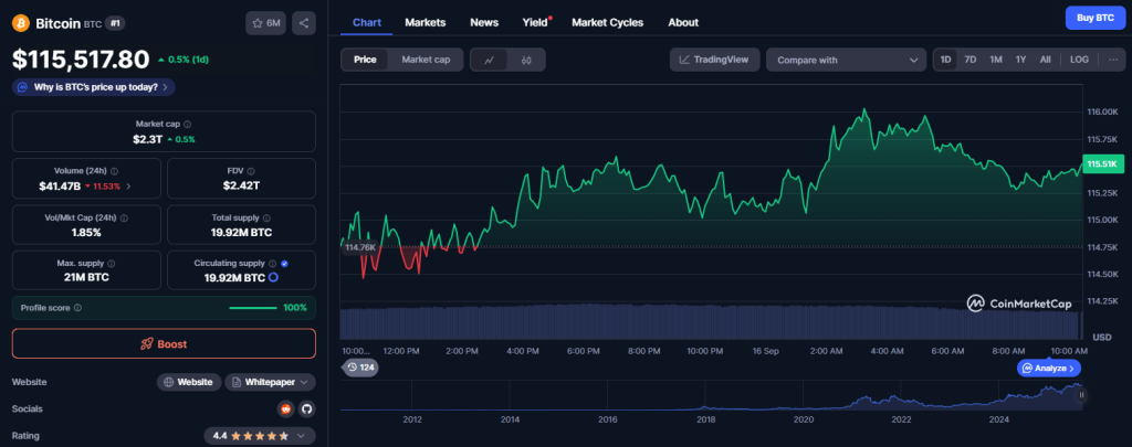 O preço, atualmente sustentado em torno de US$ 115 mil, depende diretamente das palavras do banco central norte-americano.
