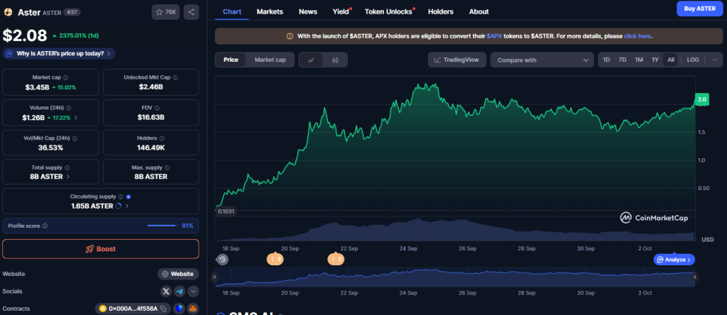 O aumento do preço do Aster coincidiu com uma expansão notável em sua atividade de mercado.