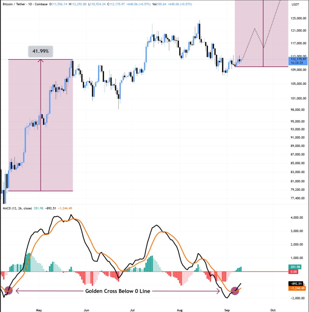O valor do BTC (Bitcoin) voltou a exibir um dos sinais técnicos mais respeitados pelos traders: o golden cross no indicador MACD.