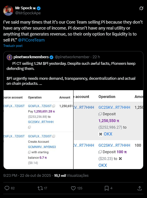 ‘Já disse várias vezes que é o nosso Core Team vendendo Pi, porque eles não têm outra fonte de renda.’, escreveu Spock em um post recente no X.