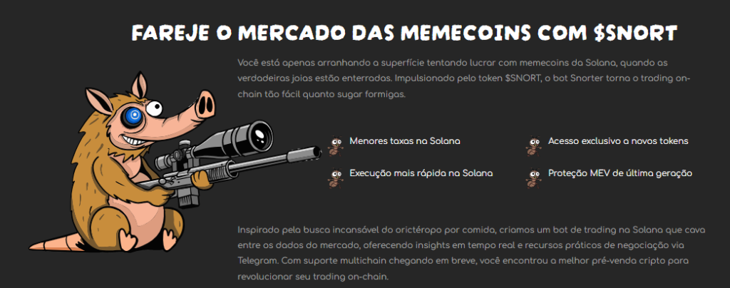 Um exemplo é o Snorter Bot (SNORT), plataforma criada para automatizar operações em memecoins com velocidade e proteção extra para traders.