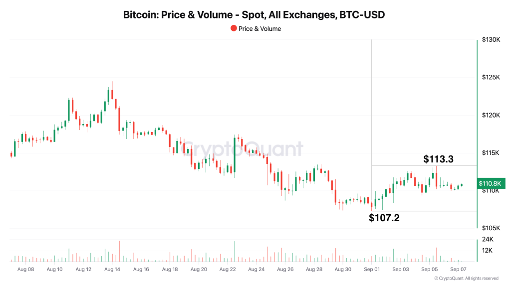 Após tocar a mínima local de US$ 107,2 mil, a criptomoeda recuperou até US$ 113,3 mil, mas voltou a perder força.
