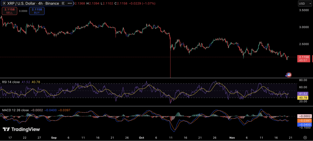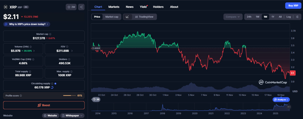Todas as tentativas de avanço encontram barreiras fortes desde outubro, e o XRP não consegue reconstruir uma estrutura sólida de alta.