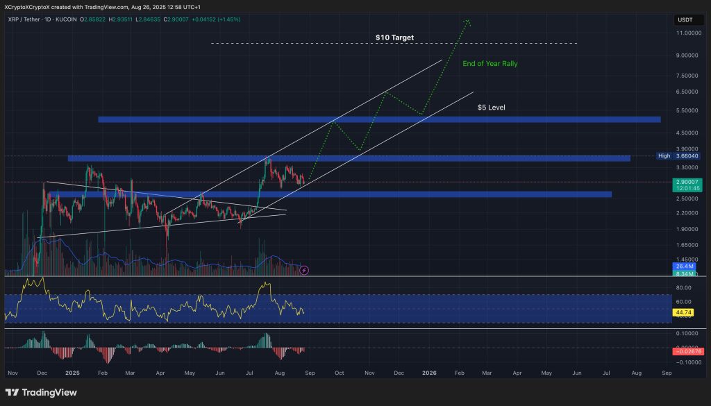 Somando-se à possibilidade de aprovação de ETFs de XRP ainda este ano, o ativo pode atingir novas máximas até 2026.