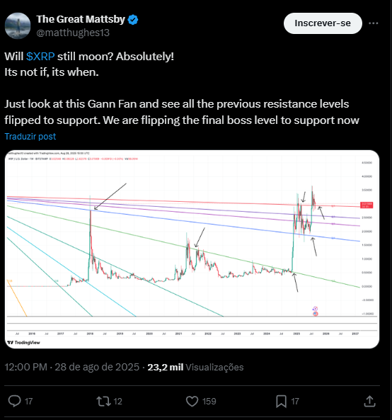 Segundo o especialista, isso pode levar o XRP a mirar valores muito acima, com projeções que chegam até US$ 9 em um cenário de forte entrada de capital.