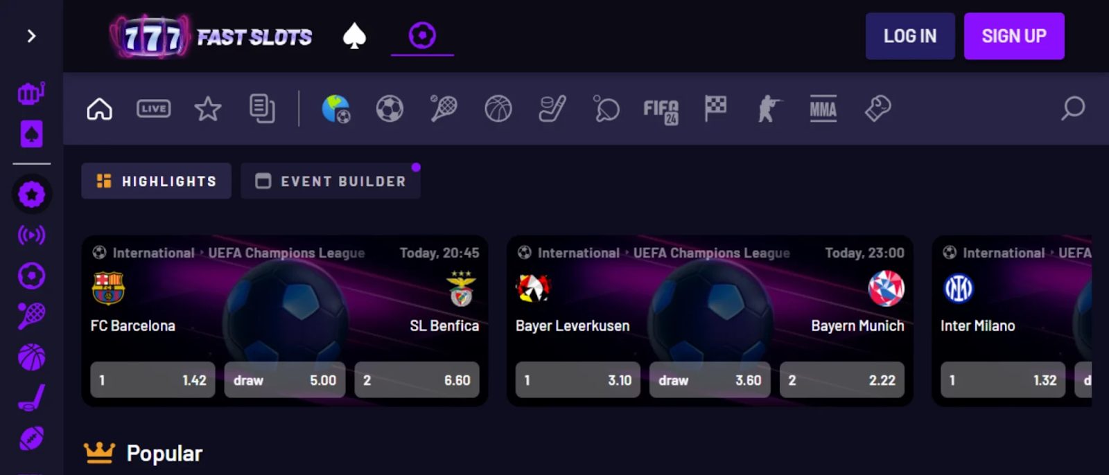 CoinCasino同时提供体育投注,涵盖足球、篮球、网球、美式足球与电竞赛事。用户可于同一帐户中自由切换赌场与体育投注模式,支援即时投注与Cashout提前结算。赔率实时更新,投注体验流畅且透明。