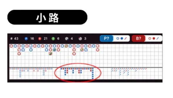 如果你已经了解了大眼路,那么理解小路就非常容易,因为它的运作逻辑几乎相同。唯一的区别在于:当大路的规律被打乱时,小路的颜色会随之变化。为了让小路有足够的数据参考,它会从大路第三列第二排开始生成。