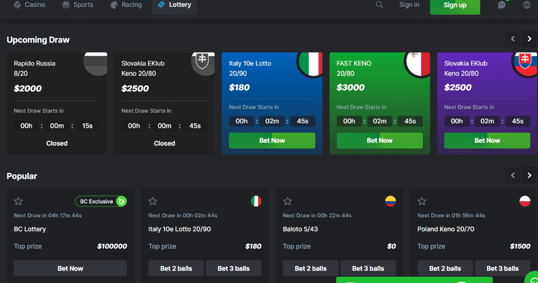 一些比特币赌博网站提供彩票游戏。我发现这些通常由可证明公平的技术支持。这意味着彩票抽奖由区块链生成,确保结果公平透明。