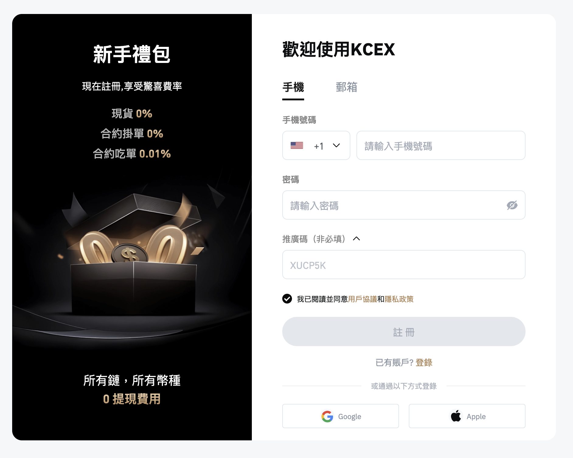 6. KCEX–无KYC加密货币交易所,现货0手续费,期货杠杆最高100倍
