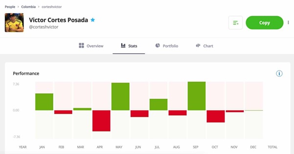 - 投资回报率(ROI):这是衡量交易员整体盈利能力的核心指标,反映自其开始交易以来的总收益百分比。您可以将其与基准指标(如标普500指数)进行对比,特别是当该交易员专注于股票市场时。
