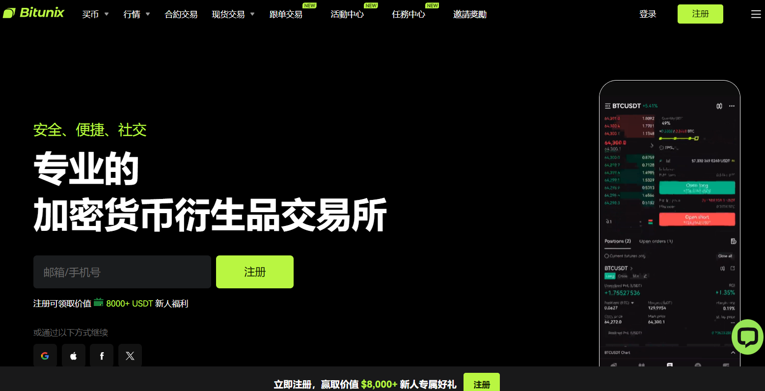 - Bitunix – 无KYC高杠杆平台,隐私交易者的首选